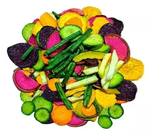 O Mix de Vegetais Chips Desidratados é a escolha perfeita para quem busca um lanche saudável, leve e saboroso. Feito com uma combinação nutritiva de abobrinha, batata doce, batata, cenoura, beterraba, vagem, rabanete, esse mix passa por um processo de desidratação natural que preserva o sabor, a crocância e os nutrientes de cada ingrediente.